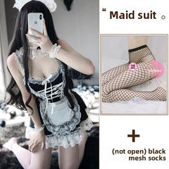 High-End Sexy Lingerie Sexy Maid Costume Maid Uniform Role Play Lace Female Slave Pajamas Hollow Out Fun Set