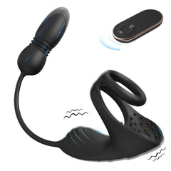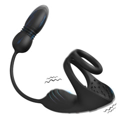New Dual Ring Locking Semen Ring Vibrating Remote Control Telescopic Insertion Shared Prostate Massager Semen Locking
